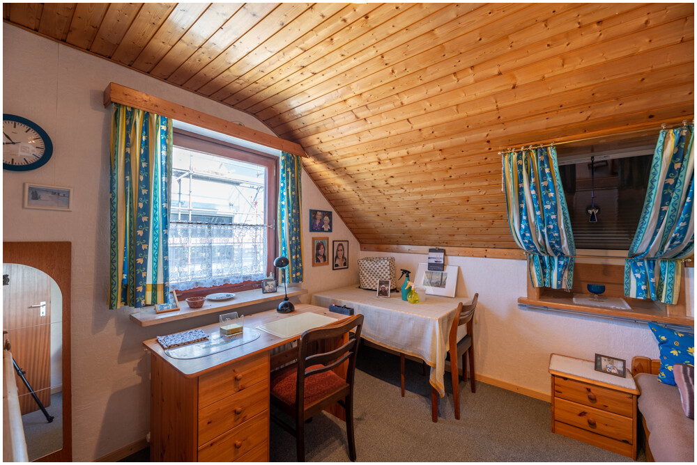 Die Küche ist separat angeordnet und funktional geschnitten; der Essplatz liegt in angenehmer Nähe und wird schnell zum Mittelpunkt für gemeinsame Mahlzeiten und gesellige Abende. Im Obergeschoss stehen mehrere Zimmer zur Verfügung, die sich flexibel als Schlaf-, Kinder-, Gäste- oder Arbeitszimmer nutzen lassen und eine freundliche Atmosphäre bieten.